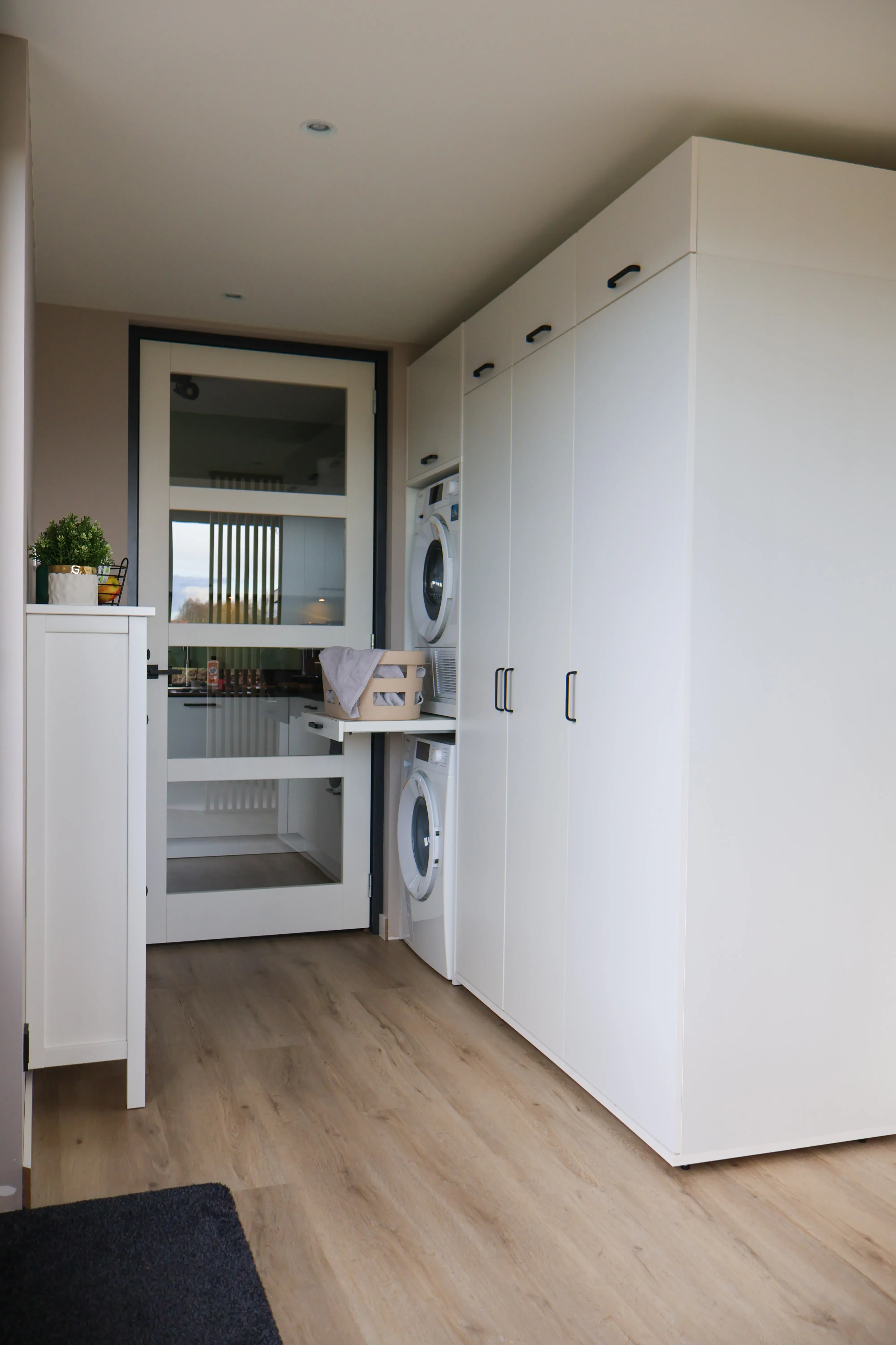 LanguageSince the cabinet was installed, the entire space has changed. Everything is neatly tucked away behind doors, eliminating visual clutter and giving the laundry area an immediate sense of calm and order. It’s also used multifunctionally: besides space for cleaning supplies, there’s also room for shoes and coats. Family and friends are extremely enthusiastic about the result. “In fact, several friends were instantly inspired to create a similarly organized laundry area themselves,” Emma says.